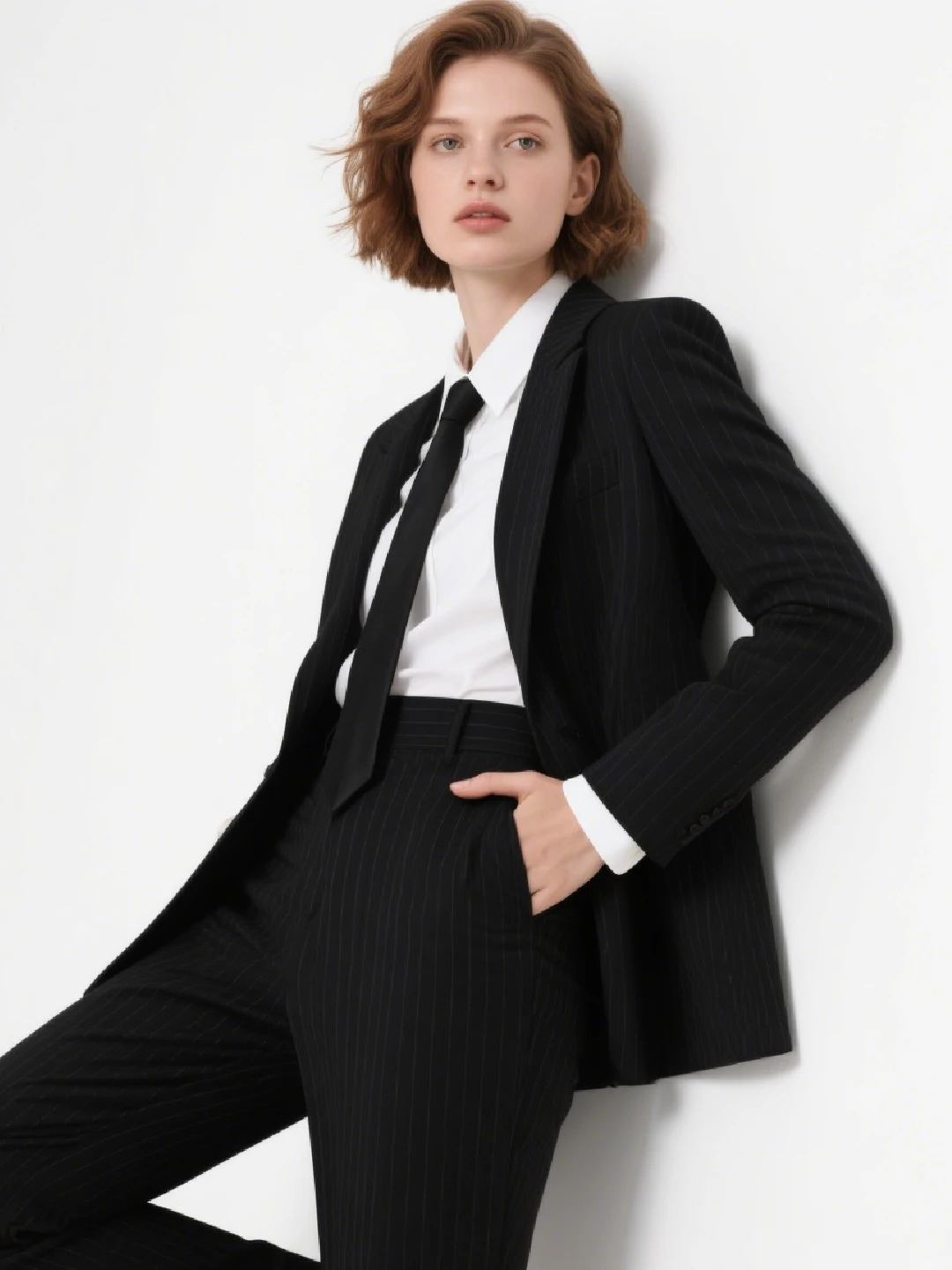 Women's Wool Blend Pinstripe Suit - Tailored Fit for Office Wear