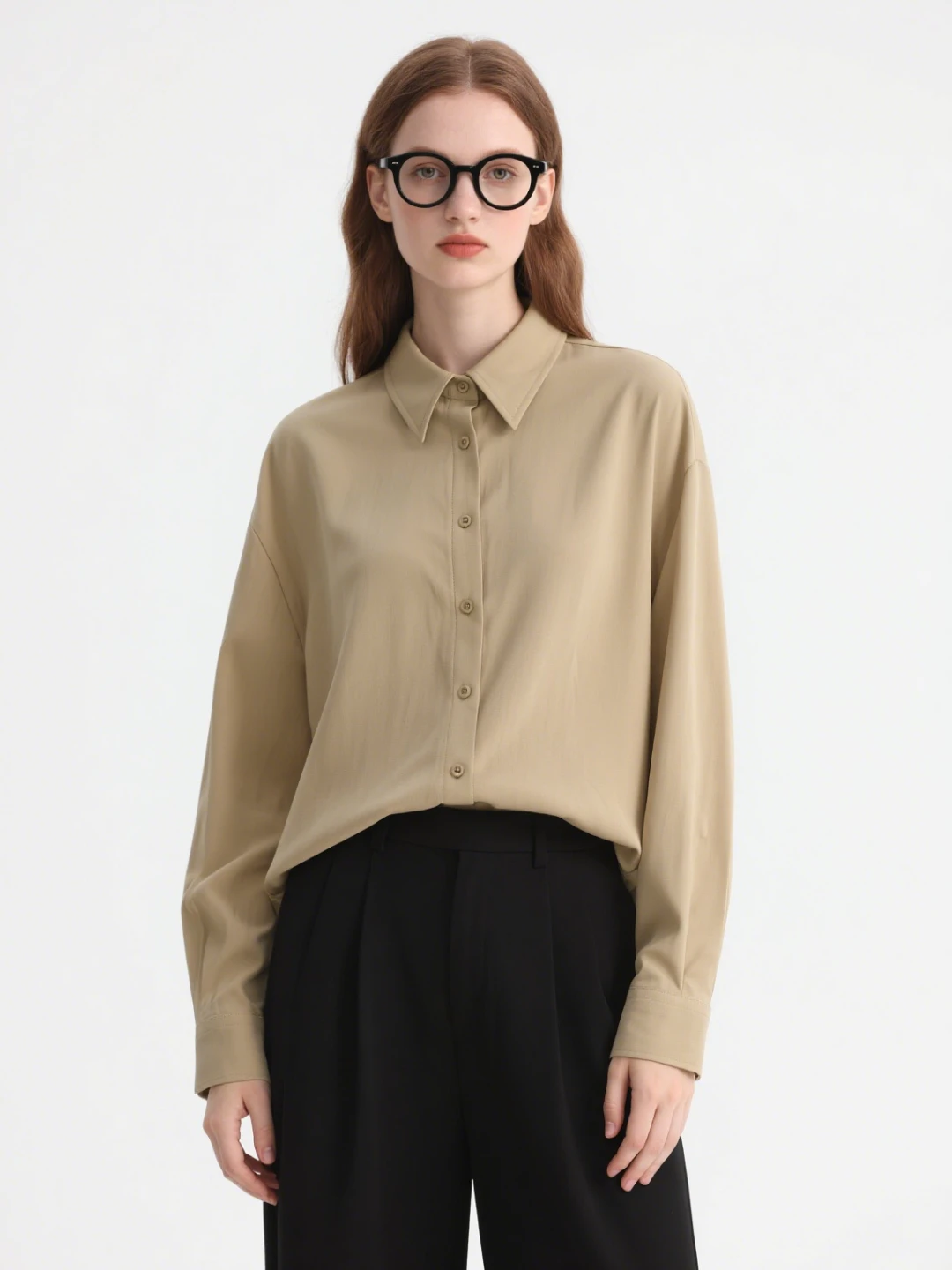 Classic Beige Cotton Blend Shirt for Minimalist Design